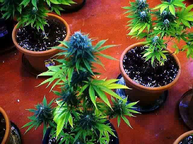 The devil I got is an old GH Red Devil clone that was used for contract commercial growouts is S.A. when they allowed 10 plant indoor grows. I presume its a old version of Mr Nice's devil. It's been around for at least 5 years and is the most popular clone in OZ over the last couple of years. I suspect it has been choosen from a very large growout because its only been flowering 36 Days and already looks finished, 1/2 pistils brown, covered in resin out to the end of the all the smaller leaves and red on all the visible stalks including leaf stems. The bud I took and smoked has quite a strong Indica high too. I will take a lower bud off every 3-4 days up to about day 54, To evaluate the best harvesting time. I have two clones flowering (and 1 kept for mothering of course) and will harvest 1 at day 42-45 which I guess should be about right. I might try a cross with a Verry Berry clone (3/4 Panama Red and 1/4 Berry Berri) which had redish/pinkish leaves at harvest to see if I can get a red stalked and leaved plant just for fun. There both female though so I'll have to hermi one.